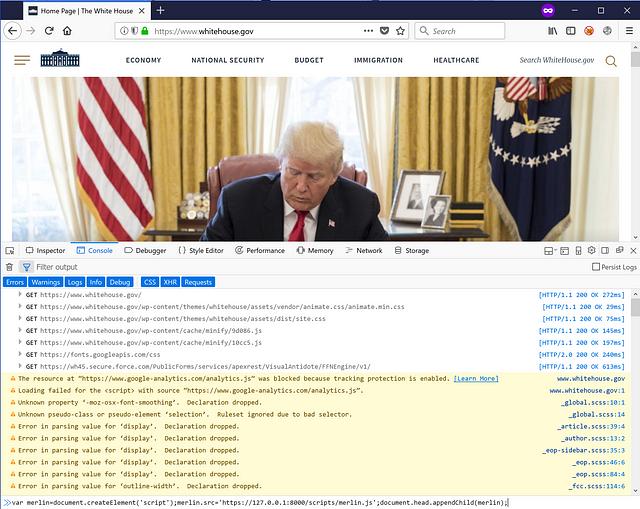 there, you can execute this command:Β var merlin=document.createElement('script');merlin.src='http://127.0.0.1:8000/scripts/merlin.js;document.head.appendChild(merlin);