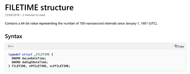 I’ve listed how FILETIME and SYSTEMTIME structures look below: