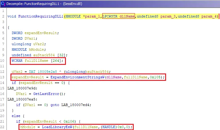 - Calls LoadLibraryExW on the result, so long as the function call succeeds in populating the buffer.