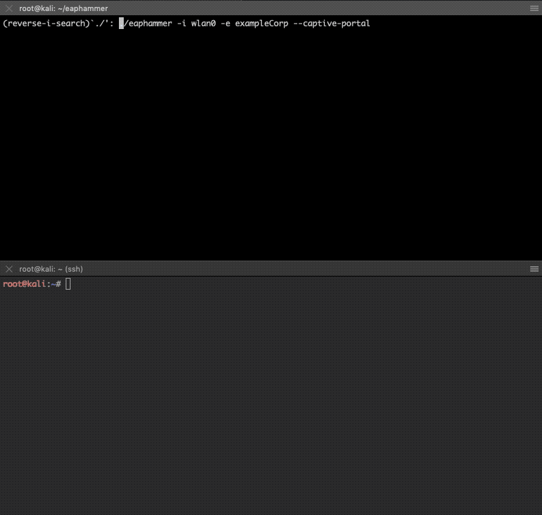 ./eaphammer -i wlan0 --essid exampleCorp --captive-portal