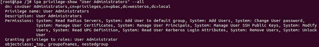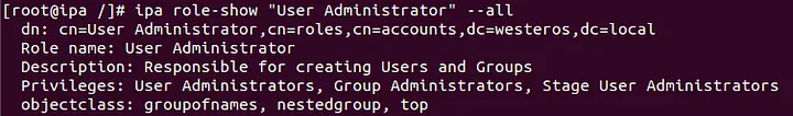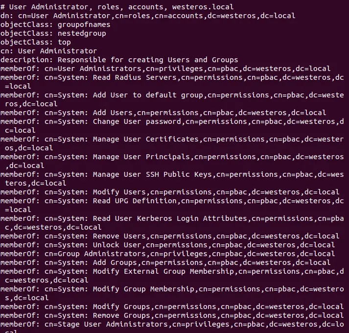 ldapsearch -Y gssapi -b "cn=roles,cn=accounts,dc=westeros,dc=local"