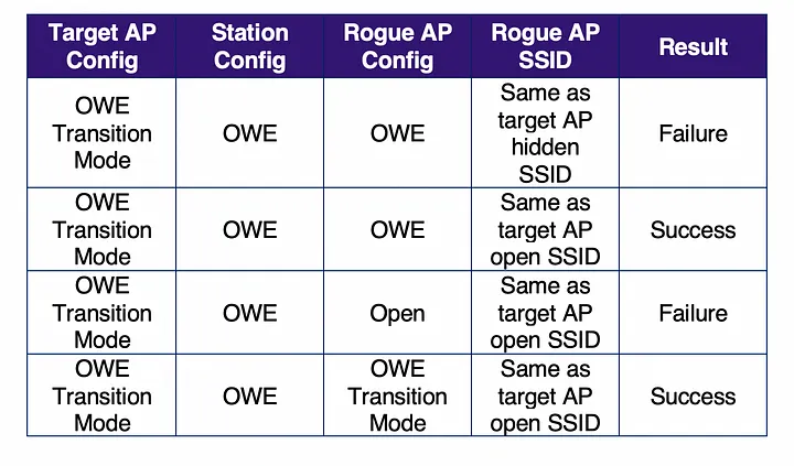 - Hypothesis: OWE is susceptible to rogue access point attacks