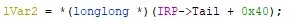 The first offset from our IRP that we can see is IRP->Tail + 0x40.