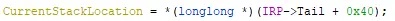 PIRP, until I findPIRP->Tail +0x40, marking theCurrentStackLocation. - Find offset
