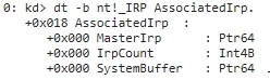 If you were to look at this in WinDbg, you’d see that at this offset is a pointer to MasterIrp.