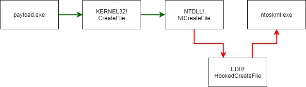 Note: If you’d like to replicate EDRs as closely as possible, I’d recommend using Detours as that is what most of the agents I’ve worked with are using under the hood.