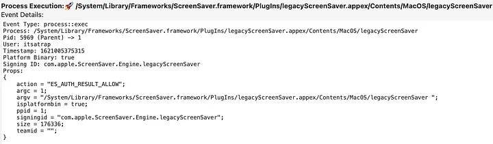 PID 5965 Execution Pulling Down and Running Apfell payloadSecond, when the screensaver is triggered, it also executes legacyScreenSaver PID 5969.