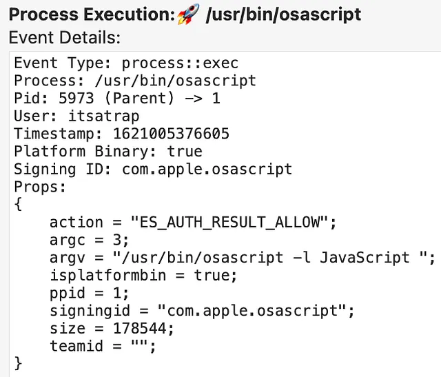 To start, PID 2751 was my initial access process of osascript.