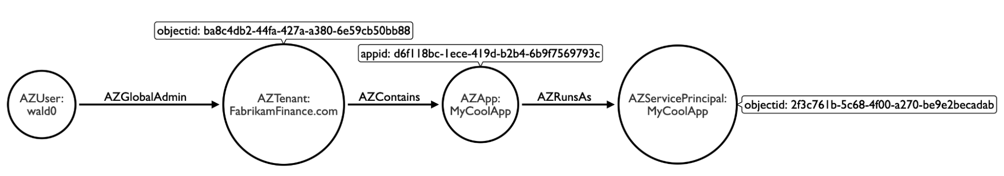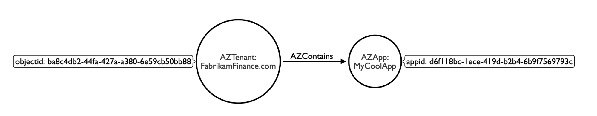 Here, the app “MyCoolApp” has a unique identifier starting with d6f118bc. Below that, you can see the ID of my tenant as well. This app object “resides” within my tenant. Let’s start to think of this in terms of a graph and see how the attack path emerges: