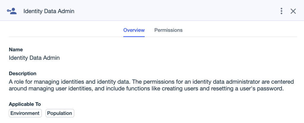 Role assignments can also be scoped to populations. For example, the “Identity Data Admin” role can be scoped to either an environment or a population: