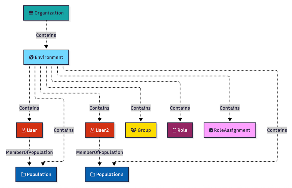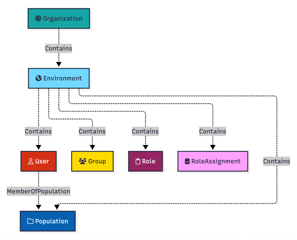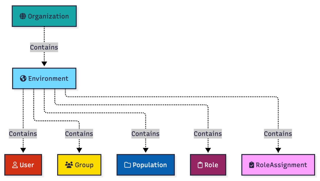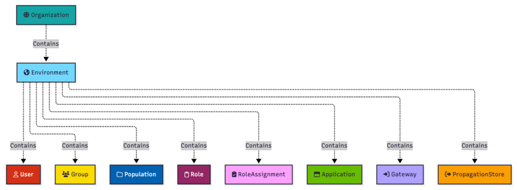 As a reminder, here is where the relevant objects find themselves within the PingOne hierarchy: