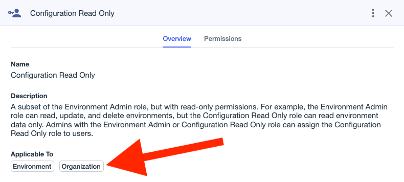 The “Application Owner” role can be scoped to environments and applications. Some roles can also be scoped to organizations.