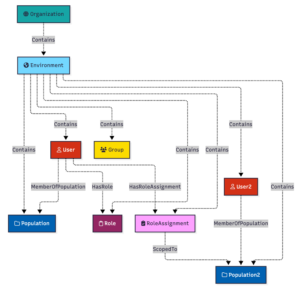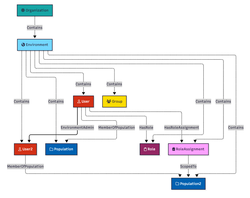 All of the logic for how PingOne RBAC configurations create outcomes like this has been encoded into PingOneHound. You do not need to understand these mechanics to get value out of PingOneHound, but you should understand these mechanics when it comes time to remediating attack path findings uncovered by PingOneHound and BloodHound.