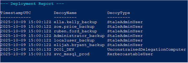 Defenders can take the output from the New-F4keH0undOpportunity cmdlet and then deploy these deception solutions into the Active Directory environment with a privileged user.