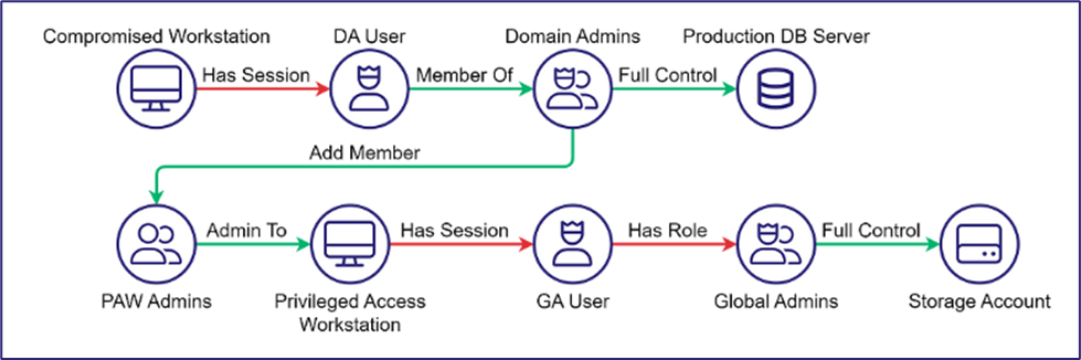 Attack Paths are the chains of abusable privileges and user behaviors that create direct and indirect connections between computers and users.