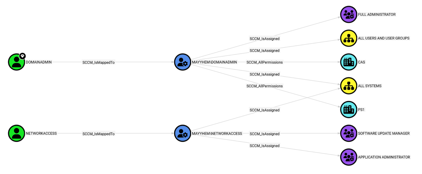 MATCH p = ()-[:SCCM_AllPermissions|SCCM_IsMappedTo|SCCM_IsAssigned]-()