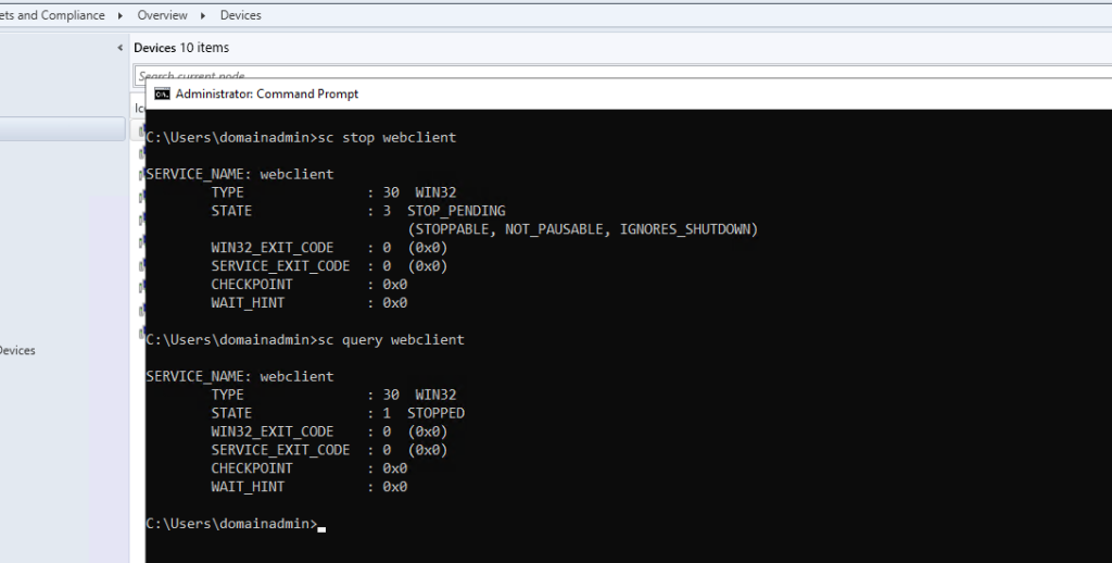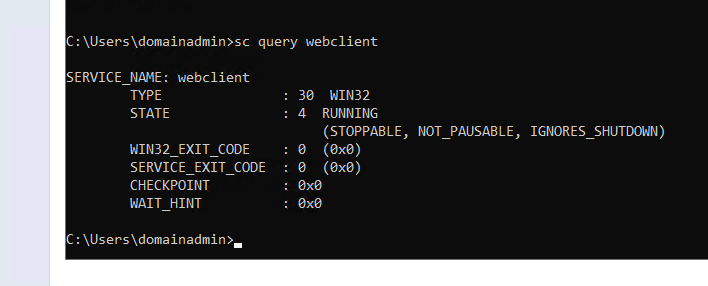 Usually, for HTTP (WebDav) authentication to be coerced from a target, the WebClient service must be started on the remote host, and this fact should be the same for SCCM site servers. Knowing this, and to confirm that this authentication was not a fluke due to the WebClient service being started for a separate reason, I logged into my site server and stopped the WebClient service.