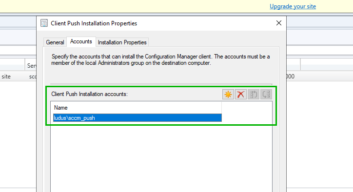 In this example, the sccm_push account is configured domain-wide as a non-Tier Zero group such as DOMAIN USERS group, but is configured as a local administrator on all SCCM clients with a Group Policy Object (GPO), ensuring that client push still functions in the domain without using an overpermissive account.