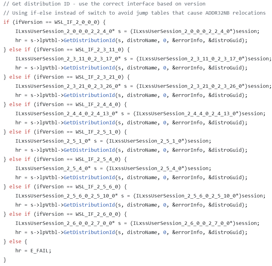 As of right now for WSL2, there are eight different unique interfaces that we need to keep track of by version, so each conditional looks like this: