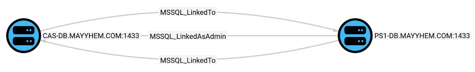 MATCH p = (:MSSQL_Server)-[:MSSQL_LinkedAsAdmin|:MSSQL_LinkedTo]->(:MSSQL_Server) RETURN p
