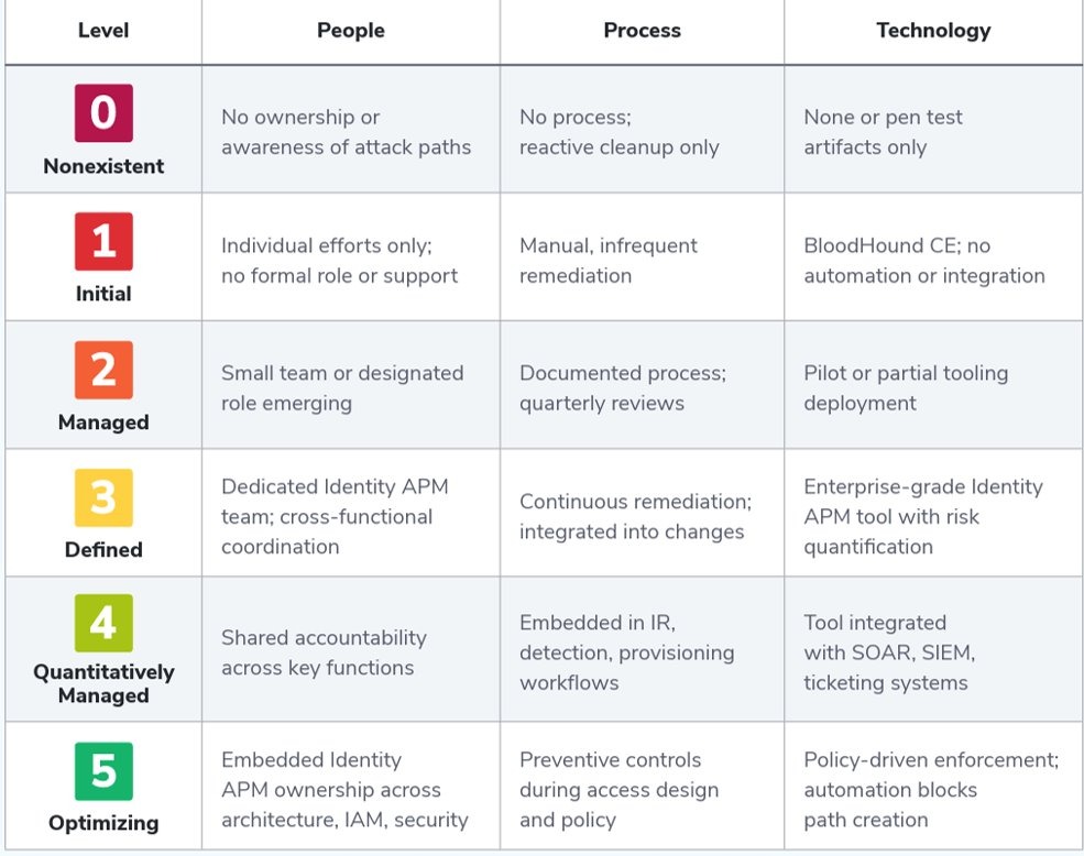 This led to a concentrated focus on a concept called Attack Path Management, which generally refers to the continuous practice of understanding and remediating the attack paths present in an environment. We developed our Attack Path Management Maturity Model to explain the different levels of maturity in implementing this program and provide measurable guidance for building and expanding this new security practice.