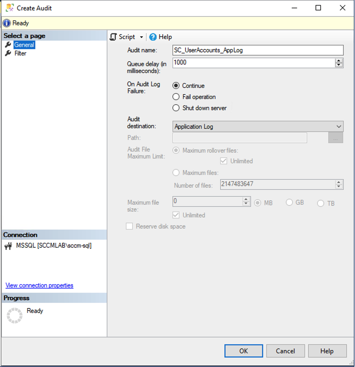 To create this SQL audit, SCCM administrators with the rights to connect to the SQL instance of MSSQL site database server via an administrative session can conduct the following actions.