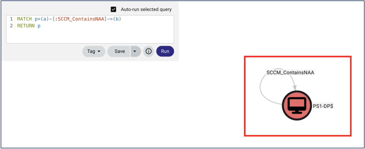 ConfigManBearPig doesn’t collect the node and edge relationship of NAAs because the collector cannot guarantee the NAA credentials are valid. However, from a deception solution perspective, we can implement canary NAA credentials and model that relationship in BloodHound OpenGraph by manually editing the ConfigManBearPig JSON output.
