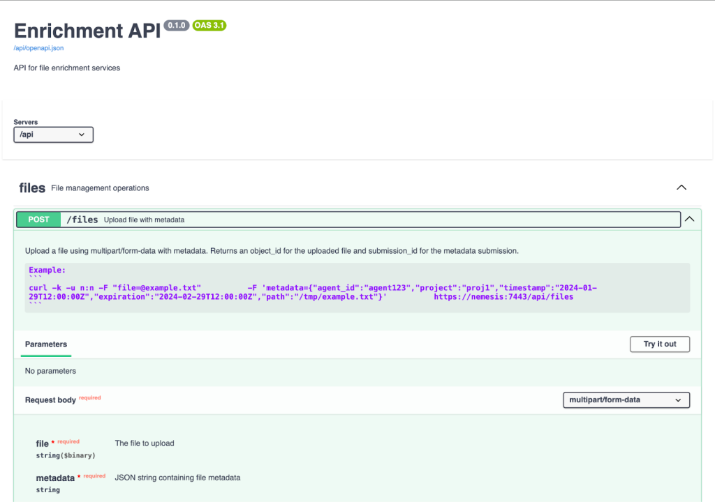 A “connector” for Nemesis is simply code that takes the downloads from a C2 platform and posts them to the https://nemesis:7443/api/files API route. How we implement this is going to vary depending on the exact architecture and features of the C2 we’re building a connector for.