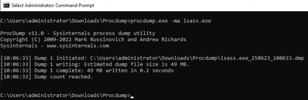 First, it helps to have a sample file, so let’s produce one from a test system using Microsoft’s signed process dumper: ProcDump. Note: This is a fresh testing machine: