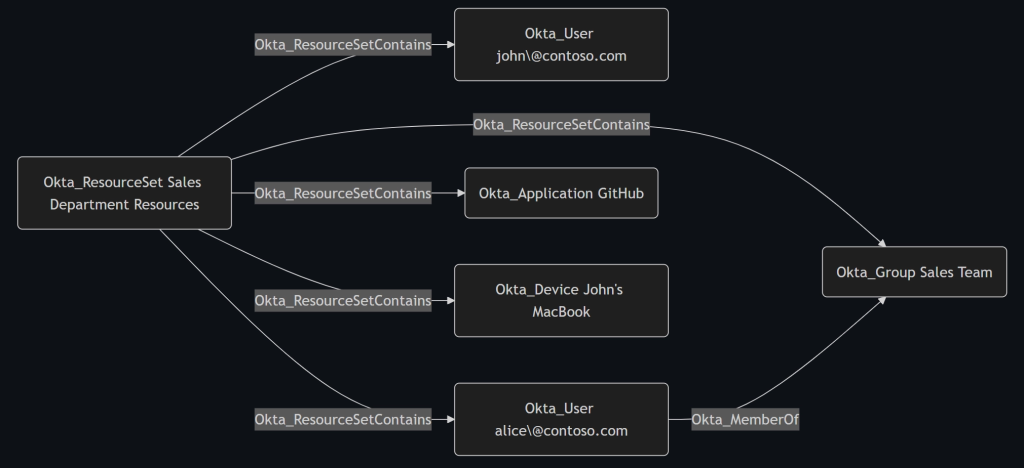 | Okta_ScopedTo | Scope relationship between a role assignment and its target | ❌ |