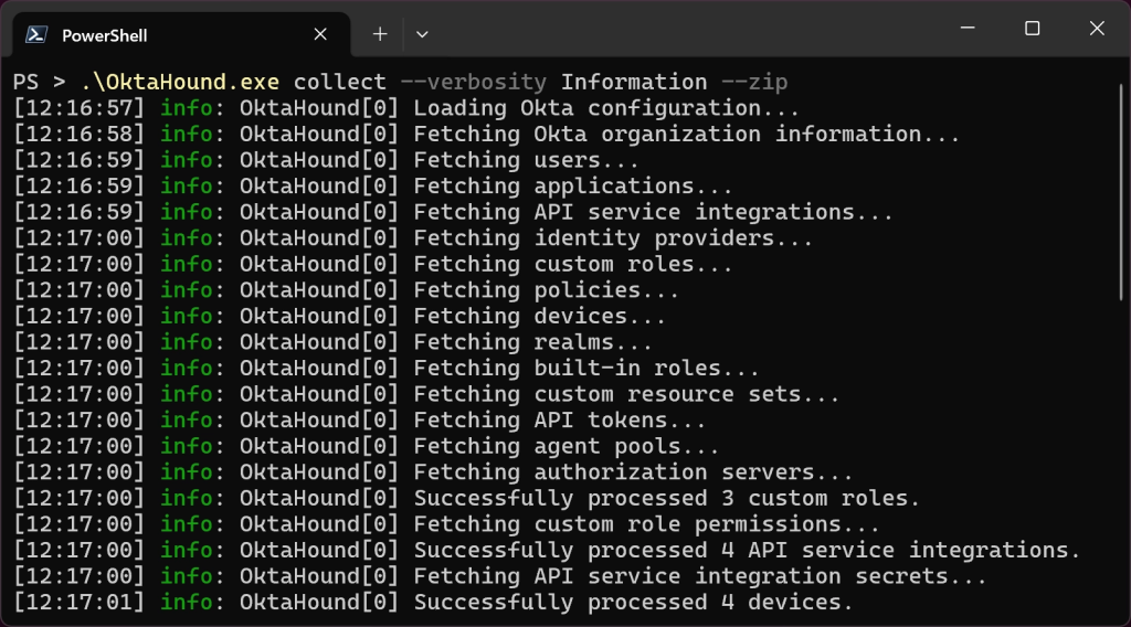 Today, we are publicly releasing OktaHound Beta: our data collector for BloodHound. This command-line interface (CLI) application for Windows, Linux, and macOS connects to the Okta Management API, fetches data about users, groups, devices, applications, roles, policies, identity providers, directory integrations, and other entities within an Okta organization, and exports the information to the OpenGraph JSON format. The graph data can then be uploaded to BloodHound for visualization and attack path analysis.
