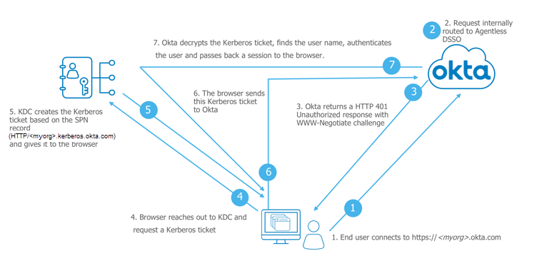 With agentless Desktop SSO (DSSO), you don’t need to deploy IWA agents in your Active Directory domains to implement DSSO functionality. This reduces or eliminates the maintenance overhead and provides high availability as Okta assumes responsibility for Kerberos validation.