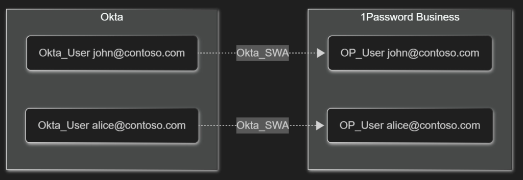 We model this security risk of cleartext password exposure using two edges: Okta_OrgSWA and Okta_SWA.