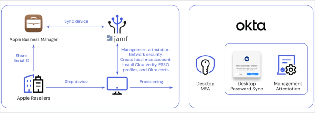 Okta is an interesting target for attackers, as organizations widely use it to manage access to their cloud and on-premises applications. When connected to a third-party mobile device management (MDM) solution like Jamf or Intune, Okta could indirectly be misused for endpoint takeover. Compromising an Okta organization (i.e., tenant) could thus provide attackers with access to a wide range of resources and data.