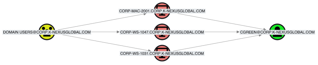 The Domain Users group has a path to Cynthia’s User account. This means any Active Directory compromise can extend to Cynthia’s account, not because she’s a target, but because the system’s design inherently provides a path for propagation.