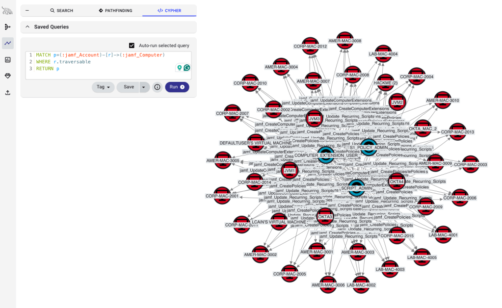 This has already been demonstrated in the Windows ecosystem. Research, such as the Misconfiguration Manager project, has shown that platforms like Microsoft Configuration Manager expose attack primitives that can lead to full domain compromise, even though those primitives exist outside Active Directory. Jamf introduces a similar class of risk for macOS environments. By modeling these platforms in the attack graph, we move beyond a directory-centric view of the environment and begin to capture a more complete picture of how control can propagate across systems.