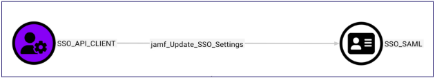 This edge represents a principal that is not a full access administrator but still possesses privileges to update the JAMF Pro tenants’ SSO settings. When a JAMF Pro account, group, or API client role possesses the “Update SSO Settings” privilege, this allows that entity to both enable and configure an IDP provider for authentication to a JAMF Pro tenant. Using API calls or the graphical console can accomplish this.