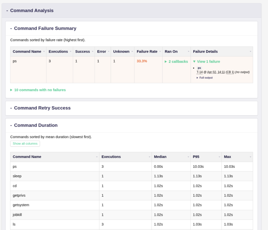 - callback-health – Which implant sessions show instability, failure patterns, or crashes?