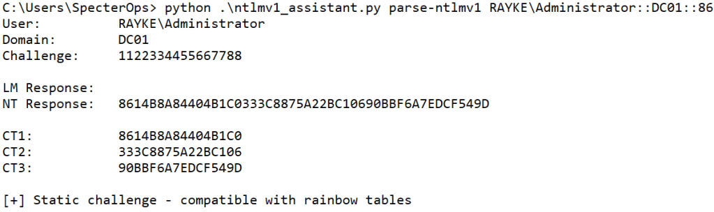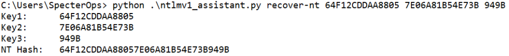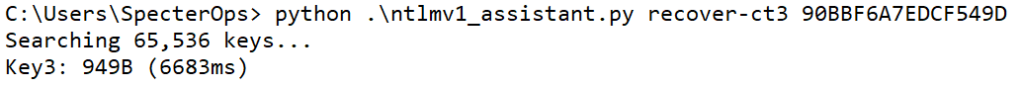 We’ll need to repeat this process twice for both CT1 and CT2; however, CT3 is only two bytes with some padding, so it can be recovered with the NTLMv1 assistant.
